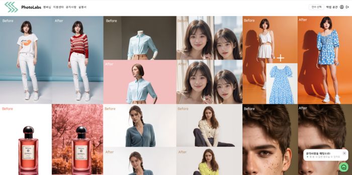 포토랩스는 온라인 쇼핑몰 운영자가 실제 모델을 고용하는 대신 가상 모델을 활용할 수 있도록 해 비용과 시간을 절감할 수 있게 한다. 또한 AI 기술을 통해 모델의 배경과 얼굴을 변경하거나 가상 착용을 시뮬레이션할 수 있는 다양한 이미지 변경 서비스를 제공한다. 이로 인해 쇼핑몰 운영자는 손쉽게 고품질의 제품 이미지를 생성하고, 고객에게 보다 생생한 쇼핑 경험을 제공할 수 있다.